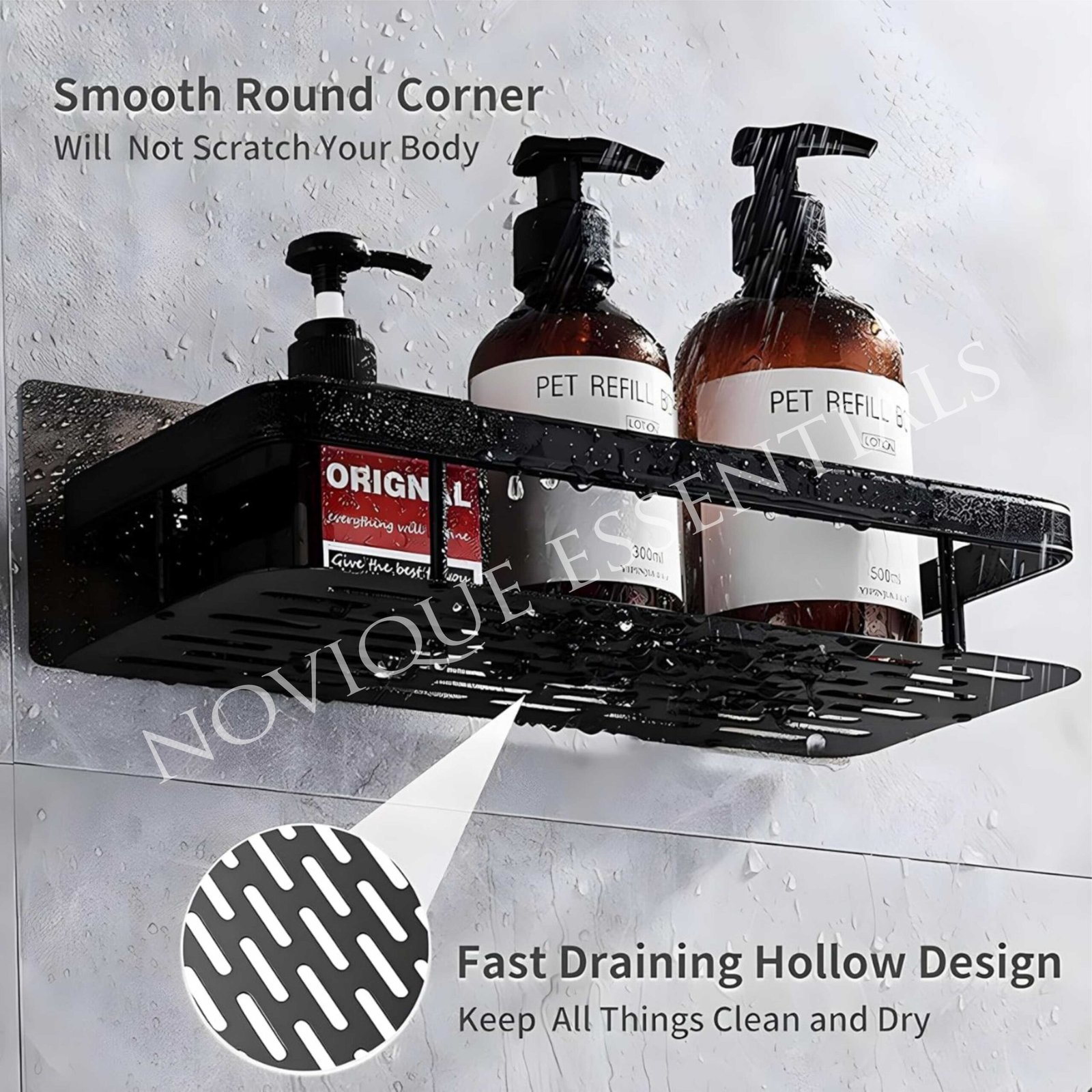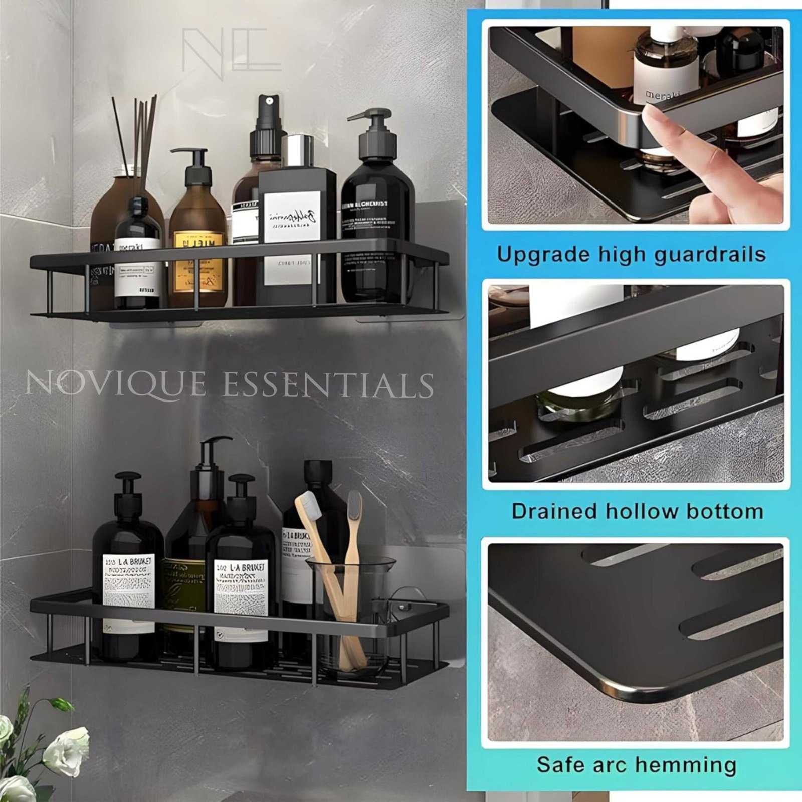 Crafted from high-quality, water-resistant materials, this bathroom organizer is built to withstand humidity and long-term use. The self-adhesive backing offers a secure hold, ensuring it stays firmly in place without slipping or falling, even in steamy conditions. Its sleek design seamlessly complements any bathroom decor for a stylish yet functional addition.